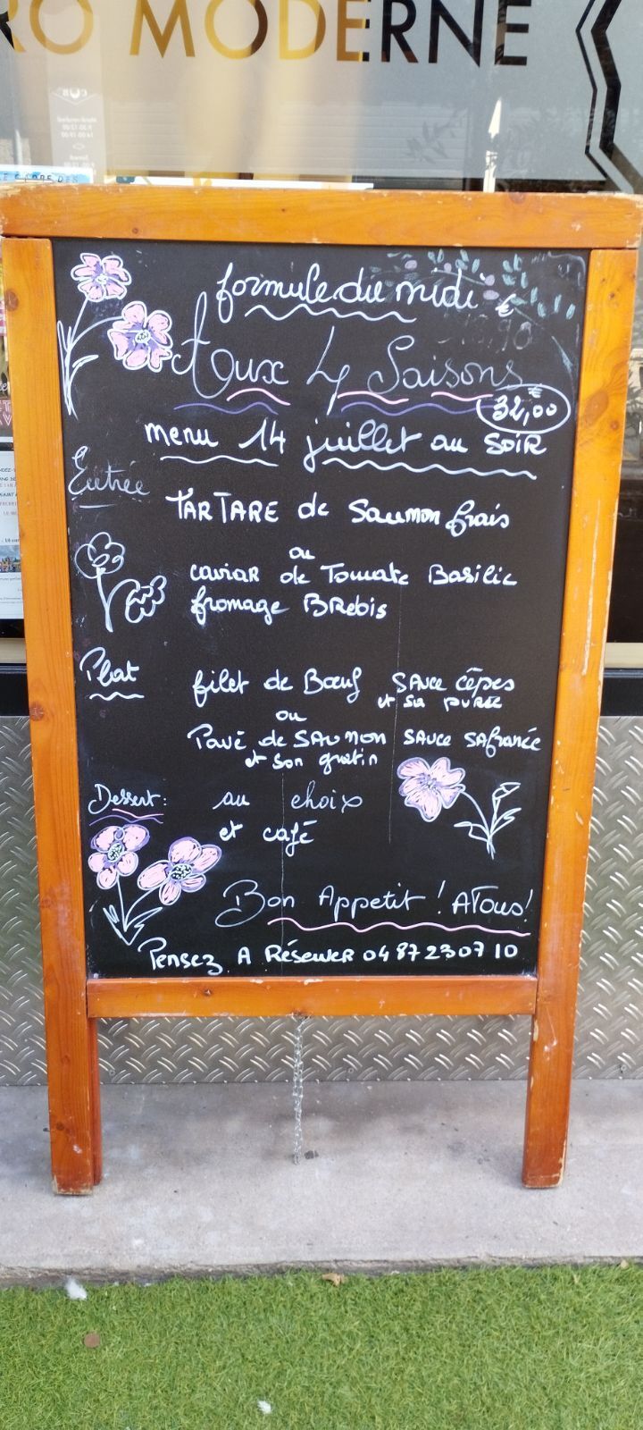 J'ai eu le plaisir de dîner au restaurant AUX 4 Saisons à Montbrison et je peux dire avec certitude que j'ai vécu une expérience délicieuse. La nourriture était exquise et a certainement répondu à mes attentes. La diversité des plats de saison était impressionnante et chaque plat était préparé avec soin et joliment présenté.