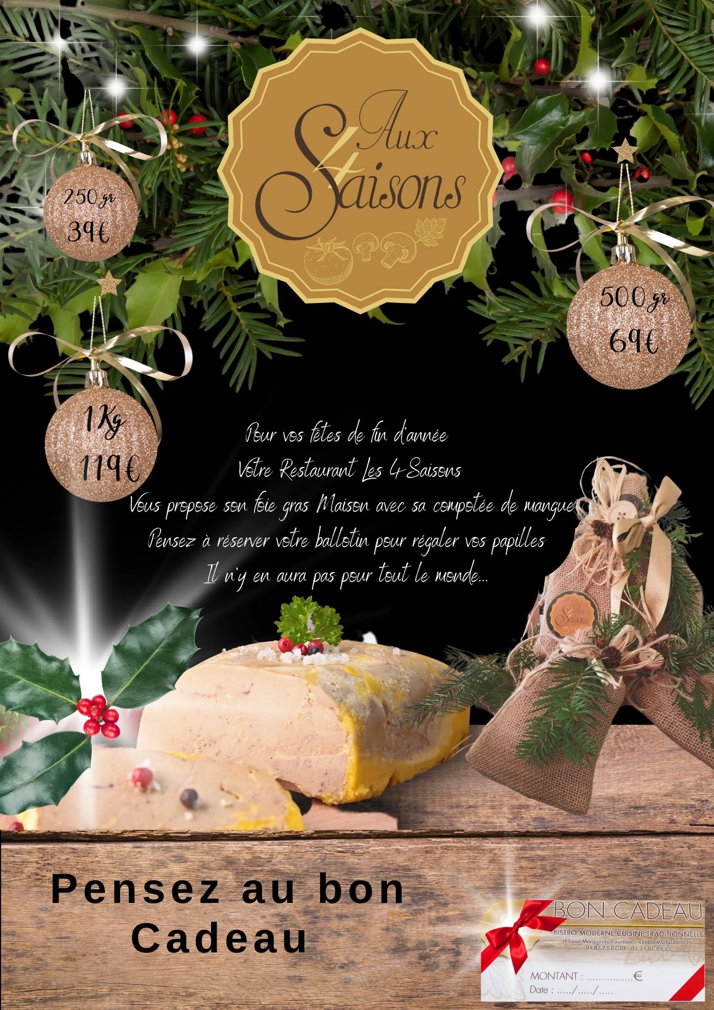 Notre foie gras pour vos fêtes de fin d'année est disponible dans nos menus rubrique foie gras, pensez a passer vos commandes au 0771018965.